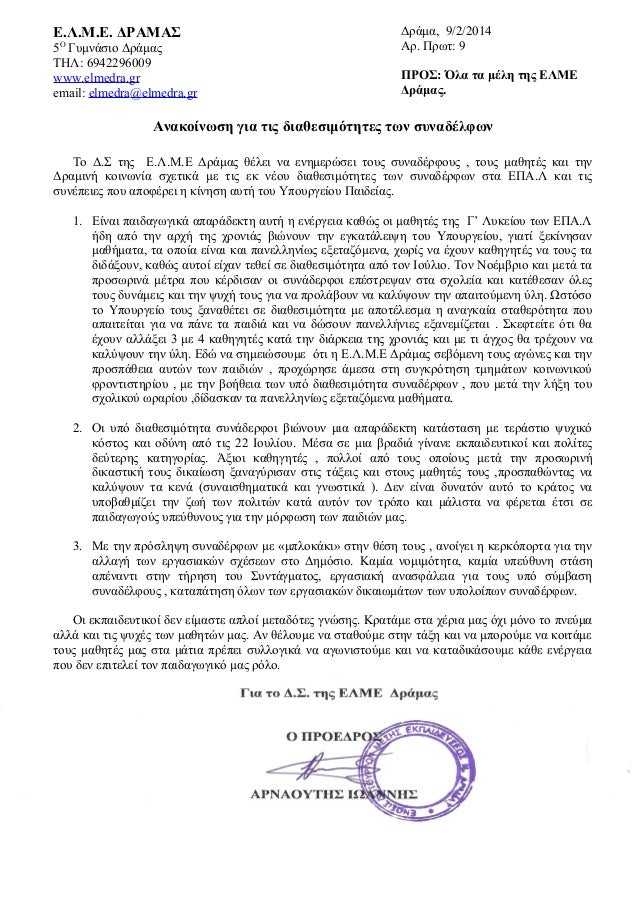 ΕΛΜΕ ΔΡΑΜΑΣ: Ανακοίνωση για τις διαθεσιμότητες των συναδέλφων
